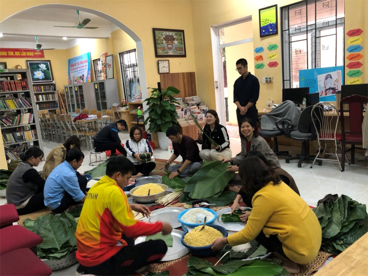 Trước đó ít ngày, Công đoàn lên kế hoạch phân công mỗi người mỗi việc, mỗi chân mỗi tay một cách rõ ràng cụ thể, chi tiết để hoạt động gói bánh diễn ra trôi chảy, nhanh chóng: người phụ trách đong gạo, người mua đỗ, người mua lá, người mua lạt, người mua thịt, người mua muối, mua tiêu… thầy cô nào ở gần thì mang chậu, mang rổ rá, mang mâm, mượn nồi luộc bánh…; người ngâm đỗ, ngâm gạo, người gói bánh, người thái thịt, người xóc muối, cắt lá,… Điều đặc biệt nhất, ấn tượng nhất trong hoạt động này là các thầy cô đều gói bánh không cần khuôn nhưng cái nào cũng vuông vức và đẹp. Ngay cả Ban giám hiệu cũng bắt tay vào việc. Như cô Nguyên Thị Thơm – Phó hiệu trưởng nhà trường trực tiếp đặt thịt và mượn nồi giúp Công đoàn, từ 7h sáng cô đã đôn đốc mọi người bắt tay vào làm. Vì thế hoạt động gói bánh xong trước dự tính: 10h30 lửa đã được thổi lên đến 22h30 thì hoàn tất quá trình luộc bánh. Như thầy Phạm Huy Thiệp – Hiệu trưởng nhà trường cũng uống tận nơi để hòa vào không khí tấp nập nhằm cổ vũ tinh thần công đoàn viên.