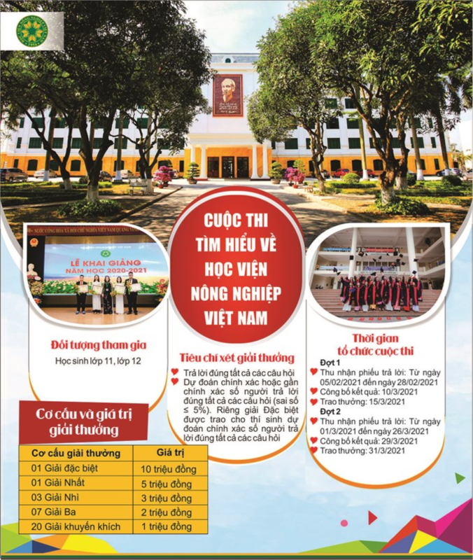 Học viện Nông Nghiệp Việt Nam tổ chức Cuộc thi tìm hiểu về Học viện Nông nghiệp Việt Nam dành cho học sinh THPT, các em Học sinh trường THPT Hồng Thái cùng tham gia Cuộc thi nhé!
